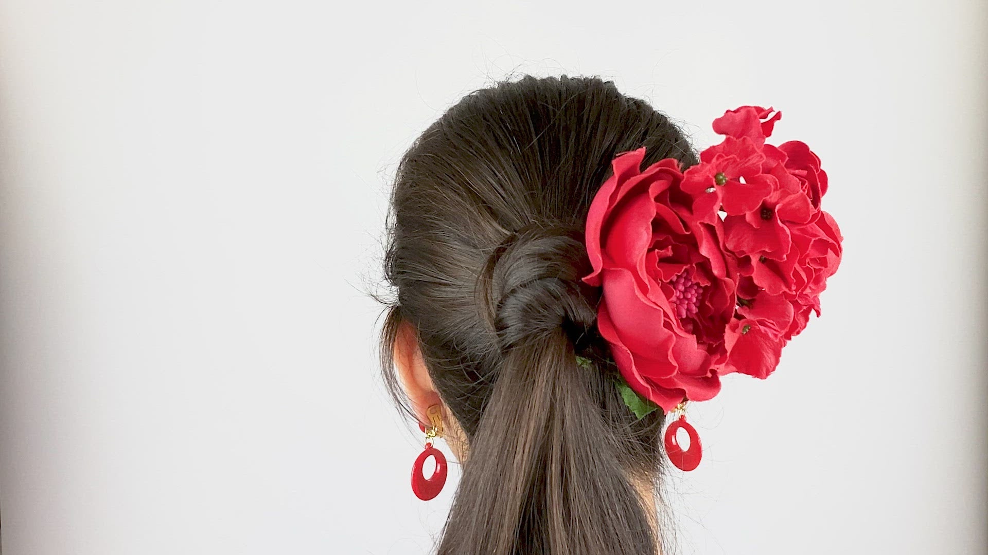 Flamenco comb girl red with earrings clip model