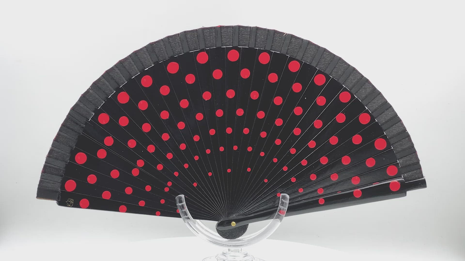 Flamenco wooden hand fan black with polka dots Lunares in red 8 inches (21 cm)